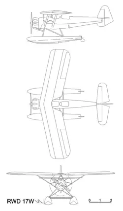 - RWD-17W - Plovákový letoun s hvězdicovým motorem Siemens Bramo Sh 14a - vyrobeno 6 letounů, 5 pro polské letectvo a prototyp pro Gdaňský aeroklub (SP-BPB), a 3 letouny pro Rumunsko (YR-AMI, YR-BRR, YR-CBA)