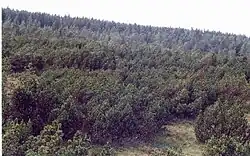 Tato vegetační jednotka pokrývá asi 11 ha z celkových 72 ha rezervace, jde ovšem o patrně nejcennější část, která byla i jádrovou součástí původní přírodní památky. Jde o porost křížence borovice blatky (Pinus rotundata) a borovice kleče (Pinus mugo). Tyto rostliny, považované někdy za samostatný druh Pinus pseudopumilio (český název není ujednocený, nejčastěji se používá termín „rašelinná kleč“) jsou vzrůstem nižší než čisté blatky, známé např. z národní přírodní rezervace Červené blato, dosahují tedy maximálně 2-3 metrů. K okraji rašeliniště se výška těchto kříženců zvyšuje, což je patrně dáno vyšším podílem genotypu blatky. V souvislosti s odvodňováním rašeliniště se na méně vlhkých okrajích u melioračních struh objevují i kříženci s borovicí lesní (Pinus sylvestris), kteří mají již téměř stromový vzrůst a horní část kmene má načervenalou barvu.