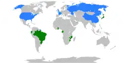 - ↑ Vymezení a názvy skupin jsou dány historicky a neodpovídají kontinentům, resp. geografických regionům. Skupina Východní Evropa tak zahrnuje státy Střední, Východní a Jižní Evropy a skupina Západní Evropa zahrnuje i státy Severní a Jižní Evropy, ale také Turecko, Izrael, Austrálii a Nový Zéland.