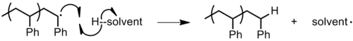 - Přesun na rozpouštědlo: z molekuly rozpouštědla se oddělí atom vodíku, což vede k tvorbě radikálu na této molekule, který se propagace neúčastní.