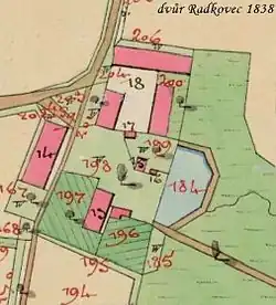 - ↑ a b PROFOUS, Antonín. Místní jména v Čechách. Jejich vznik, původní význam a změny. Svazek III. M–Ř. Praha: Nakladatelství Československé akademie věd, 1951. 632 s. Heslo Radkovec, s. 520.