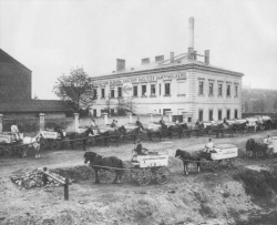 Mlékárnu pod názvem „Parní mlékárna správy statku Radlice“ založil roku 1872 Karl Kirschner, majitel statku v Lochkově a nájemce velkostatku Johanna Adolfa knížete Schwarzenberka, který od správy schwarzenberského panství se sídlem v Jinonicích koupil jednu budovu statku v Radlicích. Tu pak přestavěl na soukromou mlékárnu. Zpočátku mlékárna zpracovávala mléko vlastní výroby, později také od jiných dodavatelů. Protože se výroba rozšiřovala, podal Kirschnerův syn Karl Otto 22. ledna 1895 c. k. okresnímu hejtmanství žádost o povolení stavby nové mlékárny na Smíchově na pozemku čp. 1465/2 naproti smíchovskému nádraží. Ve 2. polovině roku 1895 byla stavba zahájena, v prosinci roku 1896 zkolaudována. Nová mlékárna „Karl Otto Kirschner Radlická parní mlékárna na Smíchově“ (K. O. Kirschner Radlitzer Dampfmolkerei in Smíchov) denně zpracovala 30 tisíc litrů mléka.