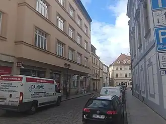Na severní straně ulice se nachází boční strana radnice a dům č. 2., bývalá renesanční kovárna.