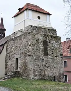 Součástí radnice je v severní části věžovitá pozdně gotická budova, která bývala solnicí, mylně však bývala považovaná za zbytek středověké tvrze. Stavba původně tvořila součást opevnění kostela. Původní budova byla solnicí, později, po roce 1545 dle dendrochronologie byla přistavěna horní část, která se stala zvonicí. Dolní přízemní část je přístupna z prostor radnice a horní část je přístupna venkovním vstupem. Věž je zakončena klasicistní dostavbou z roku 1818 se zvonicovým patrem s historickým zvonem.[4][5]