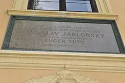- Pamětní deska Boleslava Jablonského osazena na budově fary roku 1886