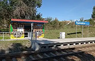 - ↑ Šumavský rozcestník : vlaková zastávka Radostice. www.sumava.cz [online]. [cit. 2021-07-08]. Dostupné online.