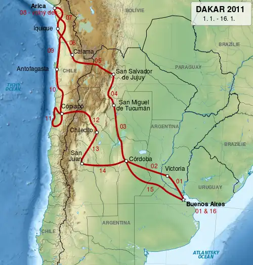 - ↑ 23-03-2010 - Dakar 2011: Argentina-Chile, Act III. www.dakar.com. Dakar Rally home page, 2010-03-23. Dostupné online [cit. 2010-04-25]. (English)
