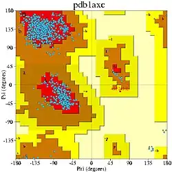- ↑ Ramachandran, G.N.; Ramakrishnan, C.; Sasisekharan, V. (1963). "Stereochemistry of polypeptide chain configurations". Journal of Molecular Biology 7: 95–9. doi:10.1016/S0022-2836(63)80023-6. PMID 13990617