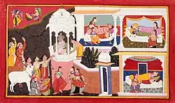 Narození Dašarathových synů (malba, Udajpur, 1712)