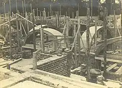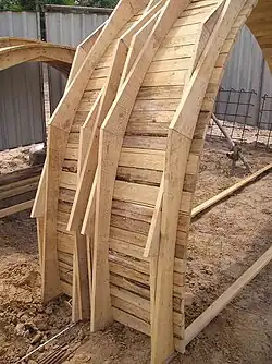 Dřevěné ramenáty s trvalým bedněním pobité rákosovou rohoží tvoří základ pro velké oblouky fabionů stropů barokních staveb.
