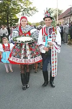 Ratíškovický slavnostní kroj – stárka a stárek při hodové slavnosti