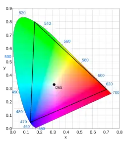 | ITU-R BT.2100 | 0,3127 | 0,3290 | 0,708 | 0,292 | 0,170 | 0,797 | 0,131 | 0,046 |
