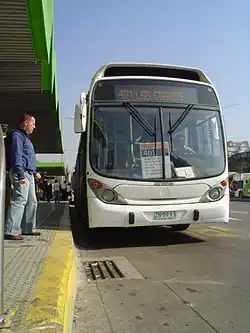 Jeden z autobusů systému v zastávce Escuela Militar