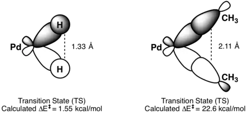 Kinetika redukční eliminace je obtížně předvídatelná, ovšem reakce, které zahrnují hydridy, jsou obzvlášť rychlé díky efektu orbitalového překrytí u přechodného stavu.[10]