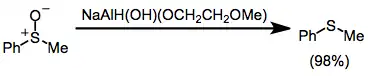 Sulfoxidy mohou být pomocí SMEAH redukovány na příslušné sulfidy.[29]