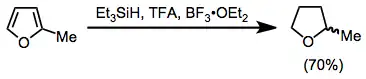 Aromatické sloučeniny mohou být redukovány kyselinou trifluoroctovou a triethylsilanem. Substituované furany se redukují na tetrahydrofurany za vysokých výtěžků.[16]