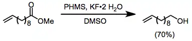 Estery lze lze zredukovat na alkoholy po nukleofilní aktivaci fluoridem cesným nebo draselným.[14]