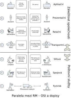 Paralela mezi OSI standardem a dopisovou komunikací mezi manažery dvou firem.