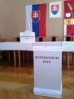 - ↑ Hlasovací preukaz na referendum treba vybaviť do štvrtka. SME.sk [online]. Petit Press, 2015-02-02 [cit. 2015-02-07]. Dostupné online. (slovensky)