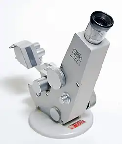 Refraktometr je přístroj pro měření indexu lomu. Jejich principem je zjišťování mezního úhlu lomu (βmax), což je maximální možný úhel lomu, jestliže se úhel dopadu limitně přiblíží 90°. Při dopadu světla např. z horního levého kvadrantu do místa průniku kolmice s fázovým rozhraním, dopadá jen do části pravého dolního kvadrantu vymezeného kolmicí a maximálním úhlem lomu. Rozhraní mezi osvětlenou a neosvětlenou částí je sledováno v dalekohledu refraktometru – po nastavení zorného pole přesně na střed lze na stupnici odečíst index lomu.