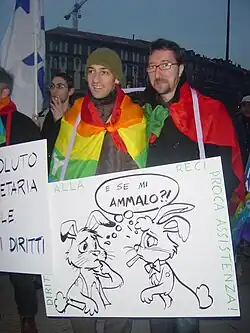 Podle policejních zdrojů demonstrovalo dne 13. ledna 2007 v Miláně 50 tisíc gay aktivistů za přijetí nového zákona o homosexuálních svazcích.[87]