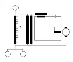 V tomto zapojení tvoří budící vinutí s kondenzátorem rezonanční obvod naladěný na napájecí frekvenci. Obvod je napájen přes pomocné vinutí na brzdové tlumivce. Toto zapojení je použité na řadě Re 6/6 z roku 1972. Účiník zde dosahuje hodnot 0,54 – 0,57 a měrná hmotnost 1,4. Jedná se o jediné zapojení s vysokým výkonem i při vysoké rychlosti, měrná hmotnost pak klesne až na 0,85 kg/kW.