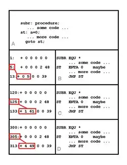 Výsledný kód se obvykle vytváří tak, aby byl funkční při umístění od adresy 0 (nula). Zároveň je vytvořena relokační tabulka, která umožňuje relokaci výsledného kódu na alternativní adresu. Relokační tabulka se připojuje do výsledného spustitelného souboru.