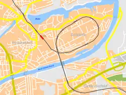 | Přes | Kielský průplav, Wehrau a Bundesstraße 202 |