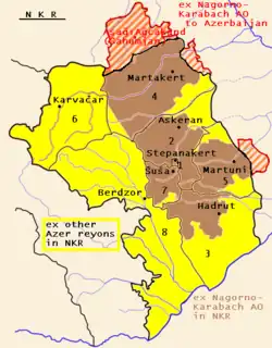 - ↑ Территориальные потери Арцаха в результате второй Карабахской войны (статистика и карты) [online]. www.kavkaz-uzel.eu [cit. 2021-01-23]. Dostupné online. (rusky)