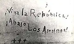 Ať žije republika, pryč s vrahy". Heslo napsané vlastní krví na zeď během nepokojů v Portoriku roku 1937