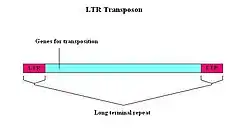 - LTR retrotranspozony – též pod označením „endogenní retroviry“; obsahují na koncích dlouhé repetitivní části zvané LTR („long terminal repeat“); tvoří kolem 8 % lidského genomu