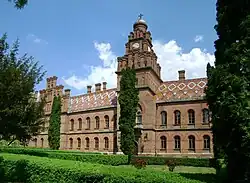 Po začlenění části Bukoviny do Habsburské monarchie (1775) byla založena Bukovinská eparchie se sídlem ve městě Černovice. Pro potřeby Bukovinských arcibiskupů a konzistoře byla v krátké době postavena biskupská rezidence. V kompozici symetricky rozmístěných objemů rezidence byly výrazně patrné boční válcovité části, které připomínaly jednolodní zděné moldavské chrámy z 15. století, pokryté strmými stanovými střechami. Fasády měly jednoduchý vzhled, horizontálně rozčleněné širokým pásem, který odděloval podlaží. Stěny byly bez dekorací, s malými obloukovými okny.