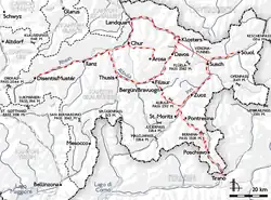- ↑ Rhätische Bahn - Ein kurzes Porträt [online]. Rhätische Bahn [cit. 2024-05-19]. Dostupné online. (německy)