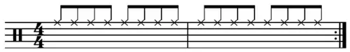 Typickou rockovou rytmickou linkou hranou na ride činel je jednoduché hraní osminových not. Někteří bubeníci ale dávají přednost hraní různých ostinátních rytmů, kdy jde o nějakou kombinaci osminových not a osminových pomlk.