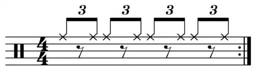 playV jazzu se na ride činel hraje swingový triolový rytmus nebo různé synkopické rytmy.