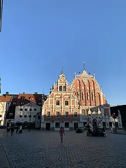 Dům Černohlavců v historickém centru Rigy První písemná zmínka o této skupině domů je z roku 1334. Na rižském náměstí se nachází dům pojmenovaný buď po sv. Mořicovi, který byl patronem cechu svobodných kupců, nebo po černých pokrývkách hlavy, které kupci nosili. Původní budova ze 14. století, která svobodným kupcům patřila, ale byla za druhé světové války vybombardována. Současná stavba je z roku 1999.