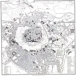 V letech 1859–1888 vznikla v místech hradeb široká ulice, obepínající na půdorysu nepravidelného šestiúhelníku historické centrum.[2]