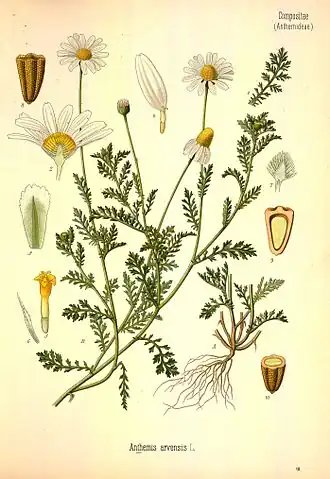 - WATSON, Linda E. Flora of North America: Anthemis arvensis [online]. Missouri Botanical Garden, St. Louis, MO & Harvard University Herbaria, Cambridge, MA, USA [cit. 2017-03-28]. Dostupné online. (anglicky)