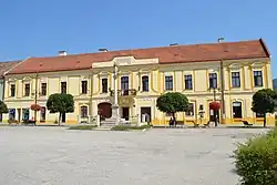 ![]() Hornické náměstí v Rožňavě. V pozadí katedrála Nanebevzetí Panny Marie a kostel sv. Anny. | |