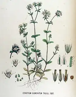 ![]() Květenství rožce klubkatého (Cerastium glomeratum) | |