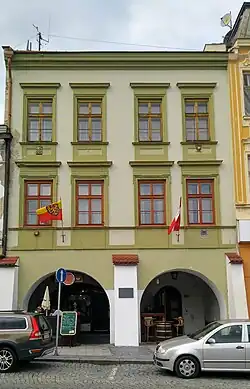 - ↑ Ústřední seznam kulturních památek České republiky [online]. Praha: Národní památkový ústav [cit. 1958-07-07]. Identifikátor záznamu 135353 : měšťanský dům U zlatého slunce. Památkový katalog. Hledat dokumenty v Metainformačním systému NPÚ [1].