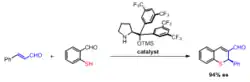 Byla popsána příprava chirálních thiochromenů organokatalytickou Robinsonovou anelací.[11]