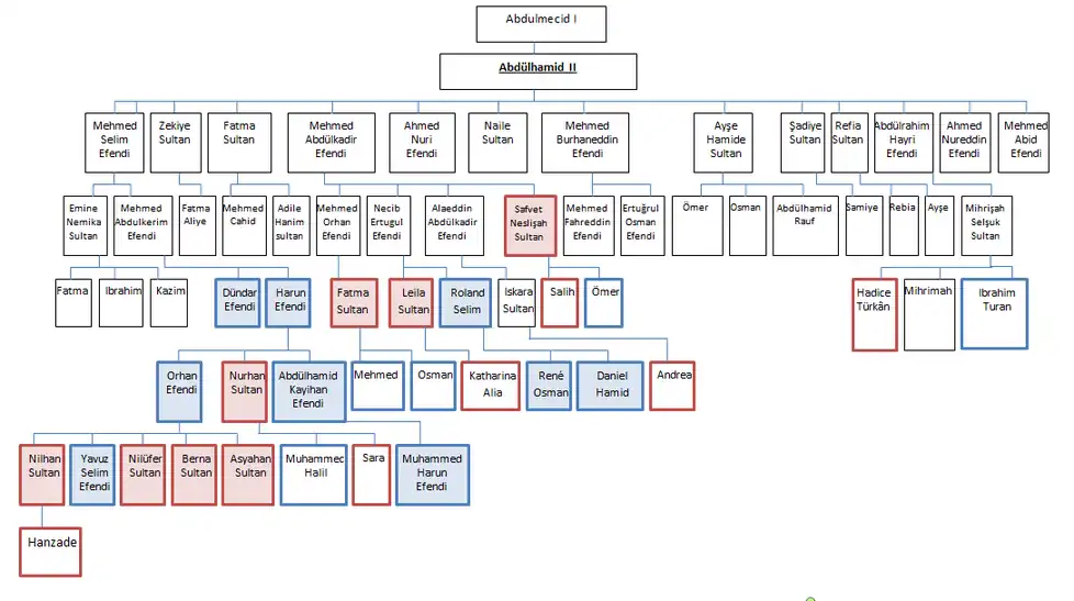 Rodokmen potomků Osmanské dynastie z větve sultána Abdulhamida II.