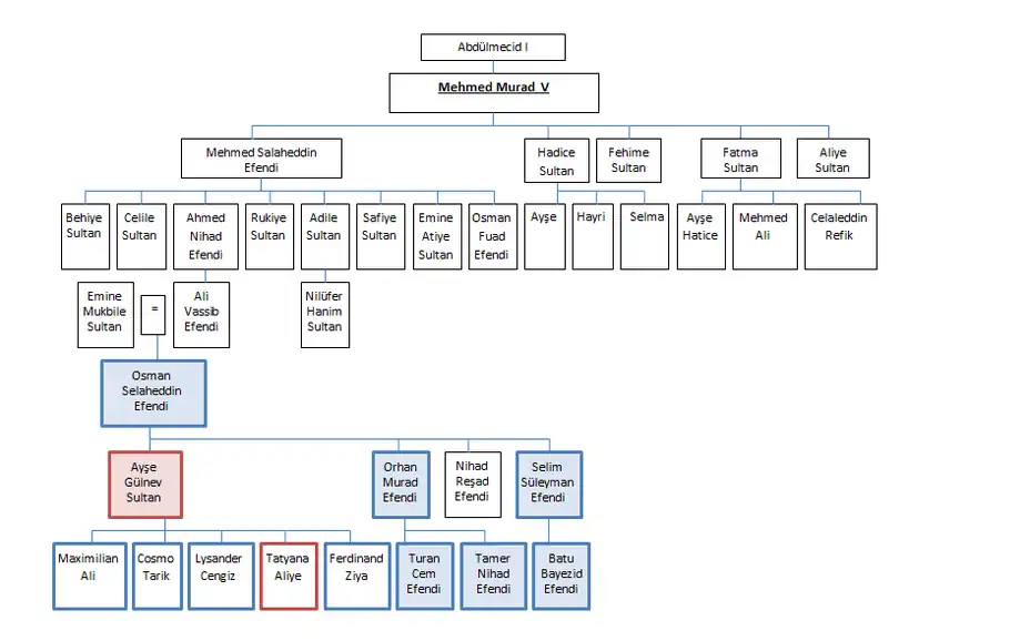 Rodokmen potomků Osmanské dynastie z větve sultána Murada V.