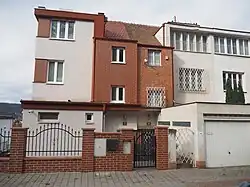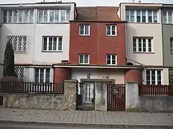 - ↑ a b c d Průčelí skupiny rodinných domů [online]. Památkový katalog: Národní památkový ústav [cit. 2025-02-28]. Dostupné online.
