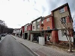 ![]() Blok řadových rodinných domů v ulici Marie Steyskalové (zleva) č. 58–48 v roce 2023 | |