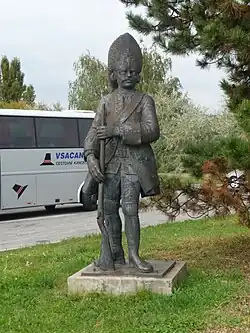 Litinový granátník v životní velikosti byl před Rohlenku postaven při dokončení motorestu. Jeho původní forma vznikla už v roce 1765, kdy byly ve Strašicích na zbirožském panství východně od Plzně odlity první dvě figury, použité k výzdobě kašny zbirožského zámku. V roce 1890 strašická huť odlila ještě tři další granátníky, přičemž jeden z nich byl v roce 1931 zapůjčen do Brna na výstavu Zašlé a moderní slevačské umění.
