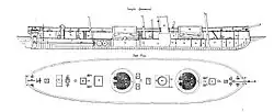Výzbroj po dokončení tvořily čtyři 68liberní děla, umístěná ve dvoudělových věžích v ose lodi. Pohonný systém tvořil parní stroj o výkonu 700 HP, pohánějící jeden lodní šroub. Palivem bylo uhlí. Plavidlo mělo rovněž škunerovou takeláž. Nejvyšší rychlost dosahovala 10,5 uzlu. Dosah byl 1150 námořních mil při rychlosti 8 uzlů.[1]