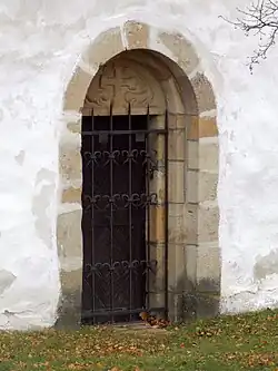 Pozdně románský portál na sev. straně kostela sv. Václava, Hulín (kol. 1224) -