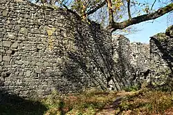 ![]() Věž v severovýchodním nároží se vstupy na hradební ochoz v prvním patře | |
